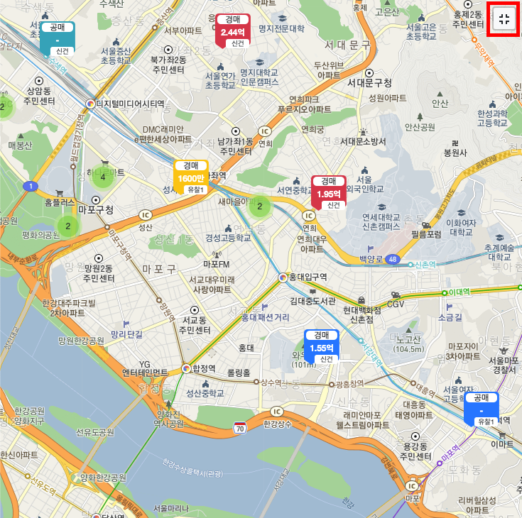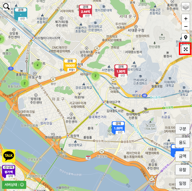 지도 빈 공간을 눌러 전환하던 전체화면 기능을 별도의 버튼으로 수정하였습니다.