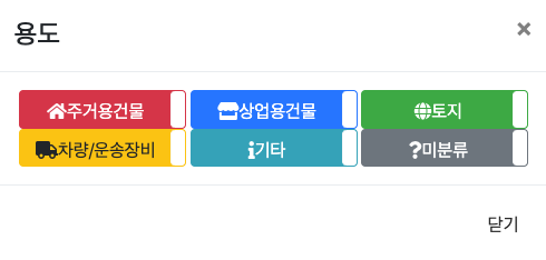용도 : 주거용/상업용/토지/차량운송장비/기타/미분류