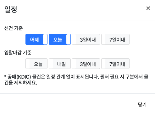 일정 : 신건 등록일/입찰마감일