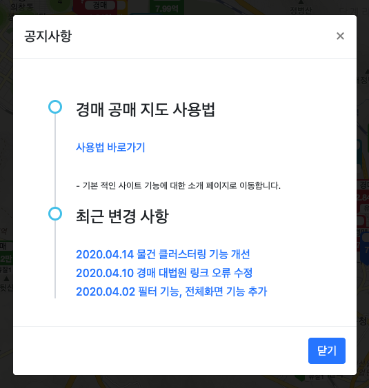 사이트 접속 시 최근 기능 변경사항을 바로 볼 수 있도록 블로그와 연계하여 표시되도록 개선하였습니다.