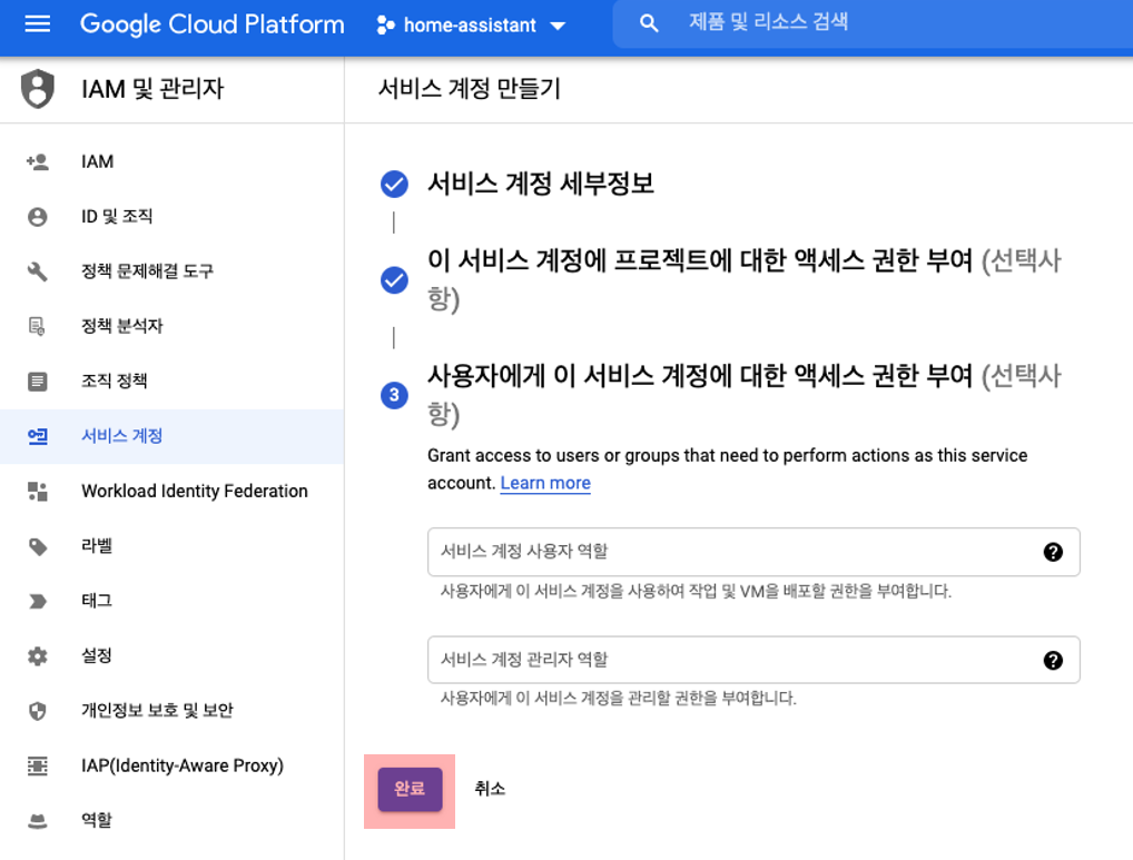 Google Assistant를 통해 가족 등이 제어를 위해 권한 추가할 경우 아래 링크 참고하시면 됩니다. 제 경우는 구글 홈 미니를 통해서만 음성인식을 할 경우라 이 과정을 진행하지 않았습니다. 나중에 추가 가능합니다.