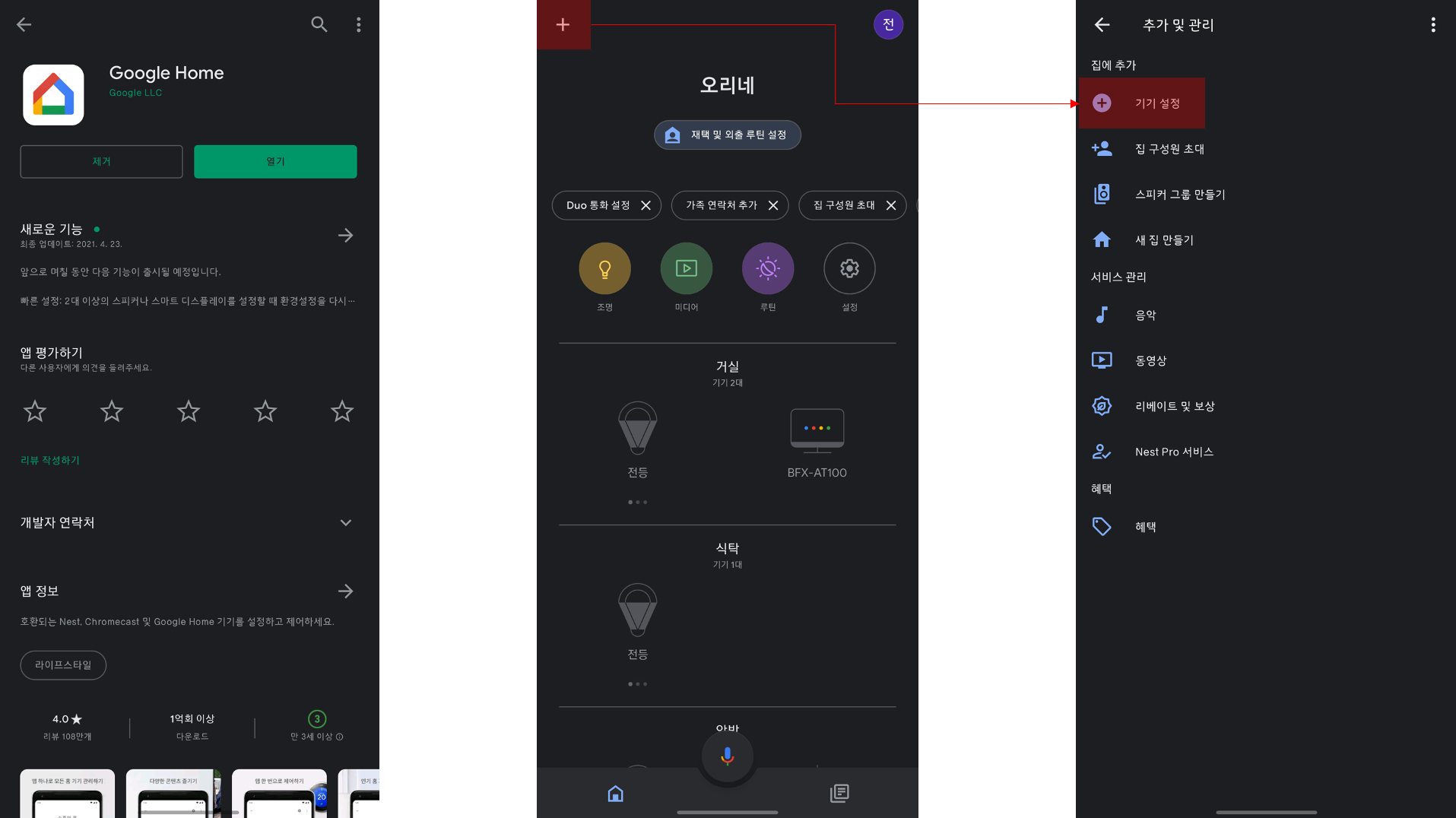 Google Home 앱을 설치하고 + 버튼을 눌러 추가해줍니다.