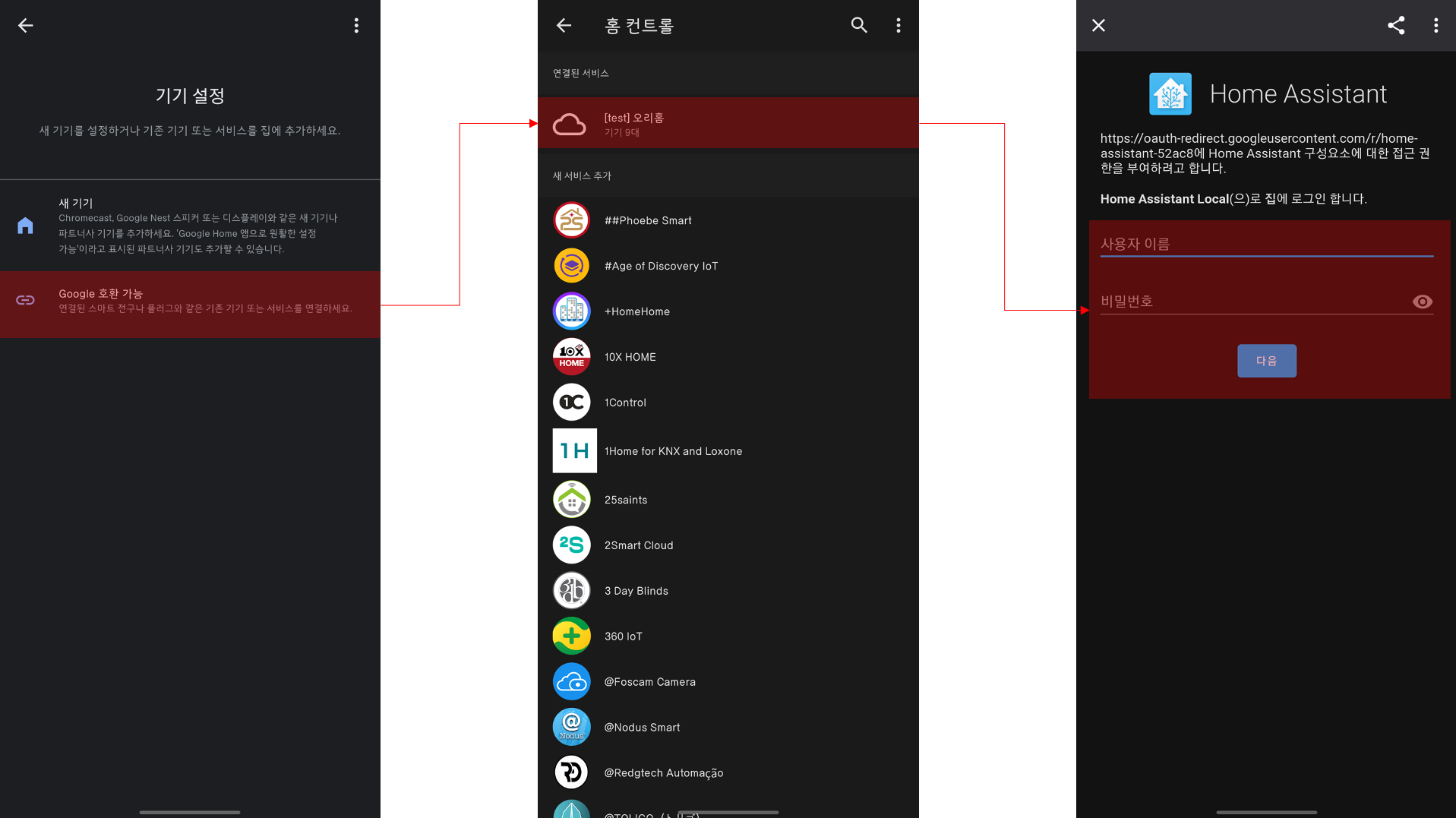 Actions on Google에서 만든 앱을 선택하면 Home Assistant 로그인 창이 뜹니다.