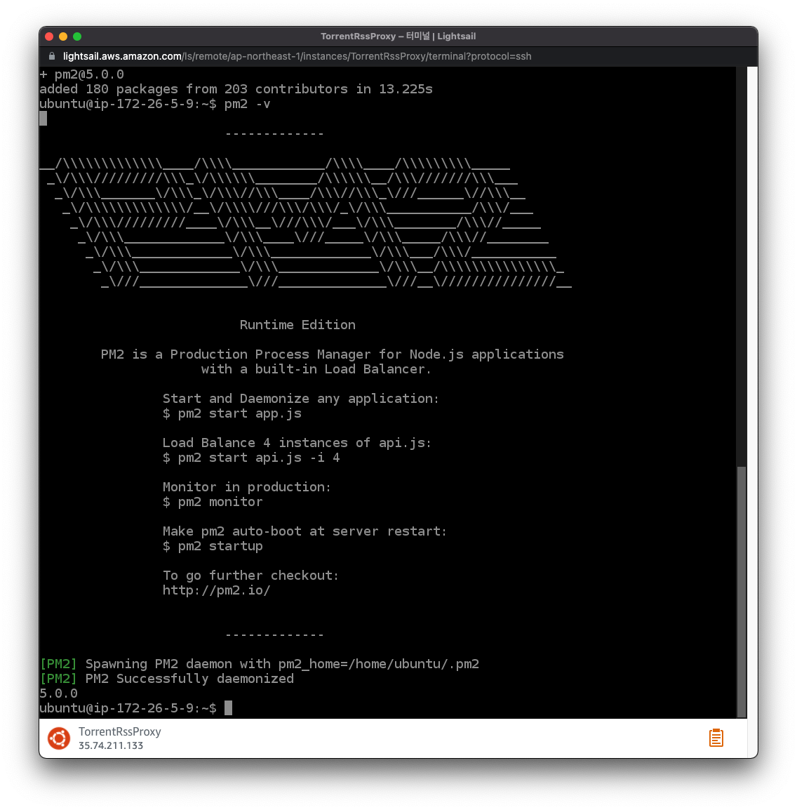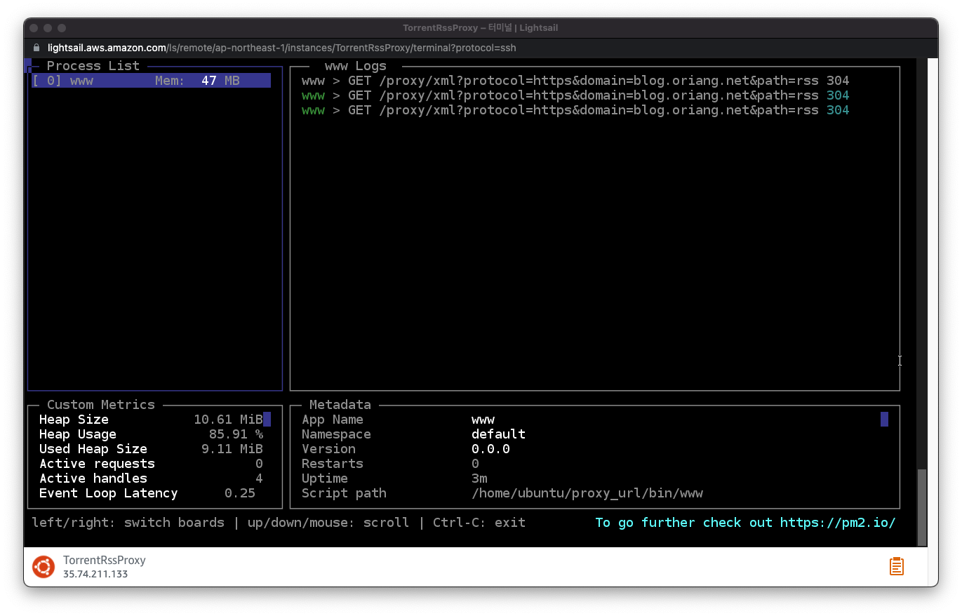 $ pm2 start /home/ubuntu/proxy_url/bin/www