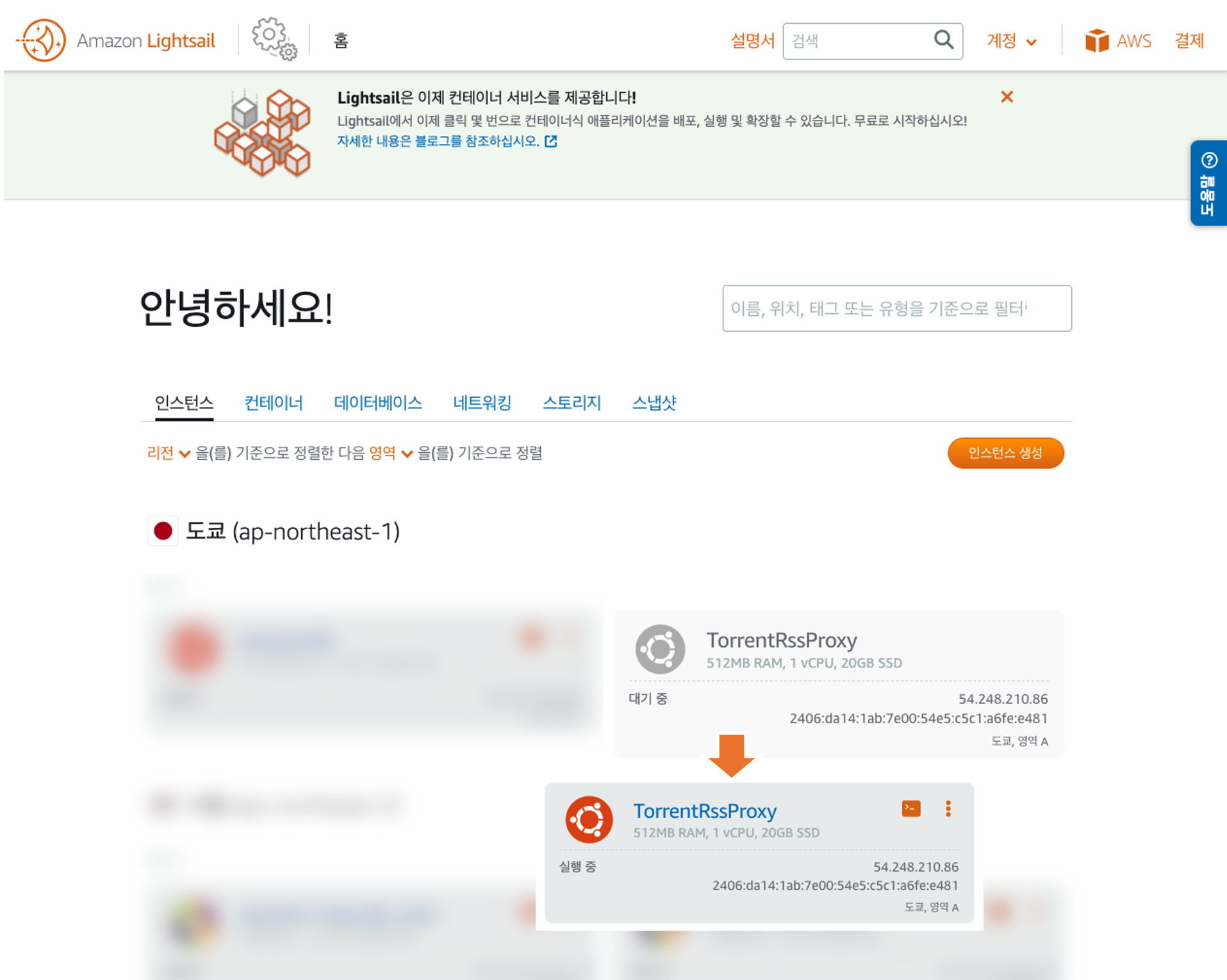 (이 글을 볼 시점엔 저 아이피와 인스턴스는 사라지고 없을 거에요.)