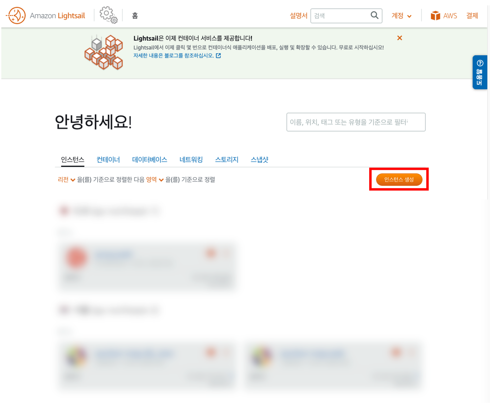 - AWS lightsail 인스턴스 생성