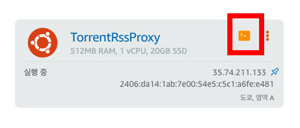 접속은 편의상 사이트에서 제공하는 콘솔로 진행하겠습니다. 홈 화면으로 돌아와서 콘솔 모양의 아이콘을 클릭합니다.
