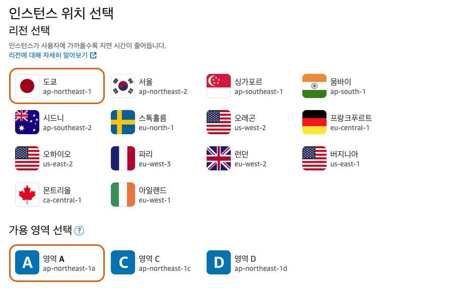 리전을 도쿄로 선택합니다.