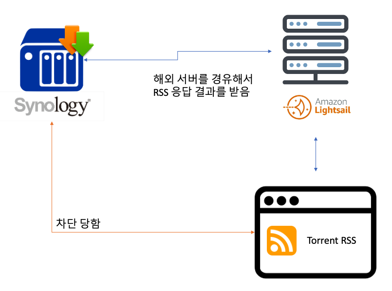 이렇게 국내에서 막혀서 접속 못 하는 토렌트 사이트 RSS를 해외 서버로 우회하여 자동으로 다운로드하도록 적용해보았습니다.