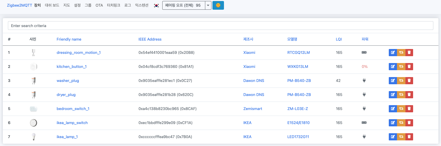 - 기기 각각 Z2M과 페어링 하기 (스위치랑 전등 페어링 방법 다름)