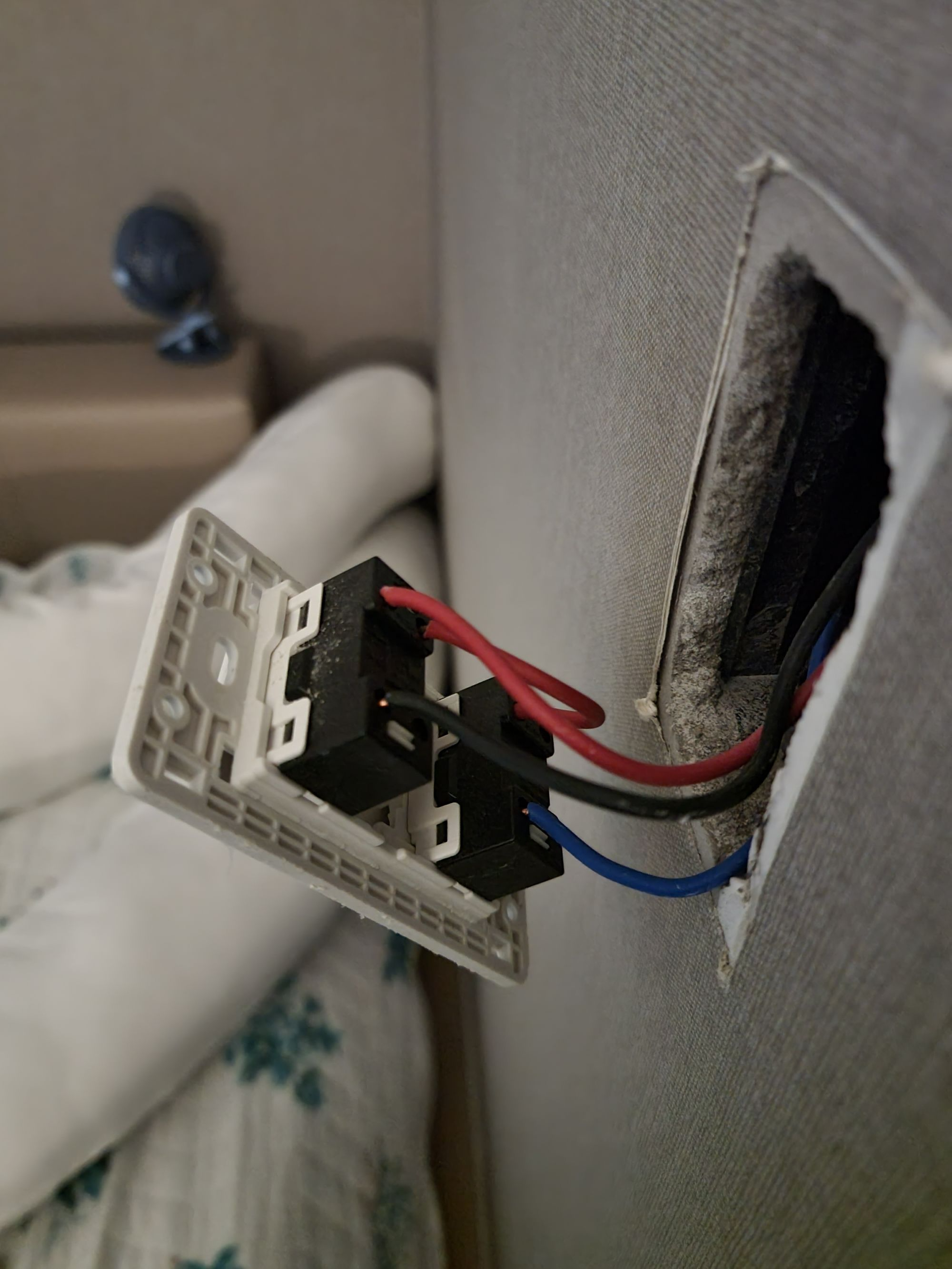 결선 작업 시 차단기를 내리고 스위치에 각 선에 맞게 연결해주었습니다.