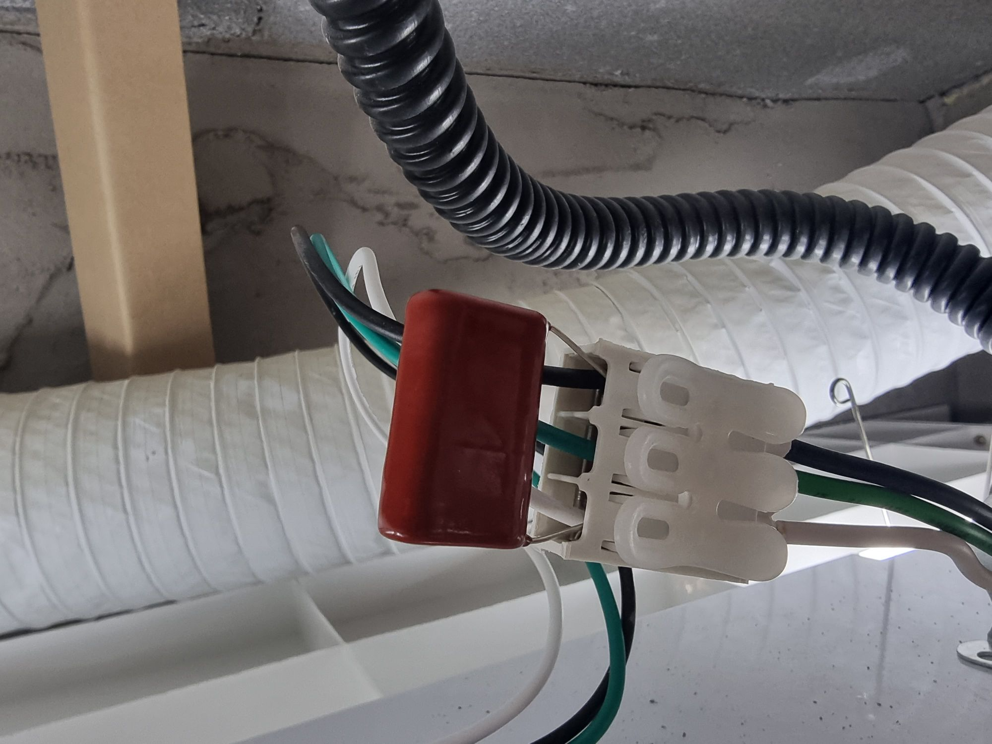 스위치를 살 때 같이 들어있던 콘덴서를 달아줬습니다. 다행히 화장실 등이 2개인데 이것하나만으로도 플리커 현상이 사라졌어요.