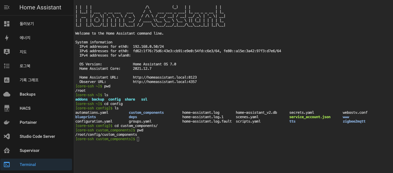 애드온 스토어에 있는 공식 Terminal & SSH를 설치하여 터미널에서 github의 소스를 받아옵니다.