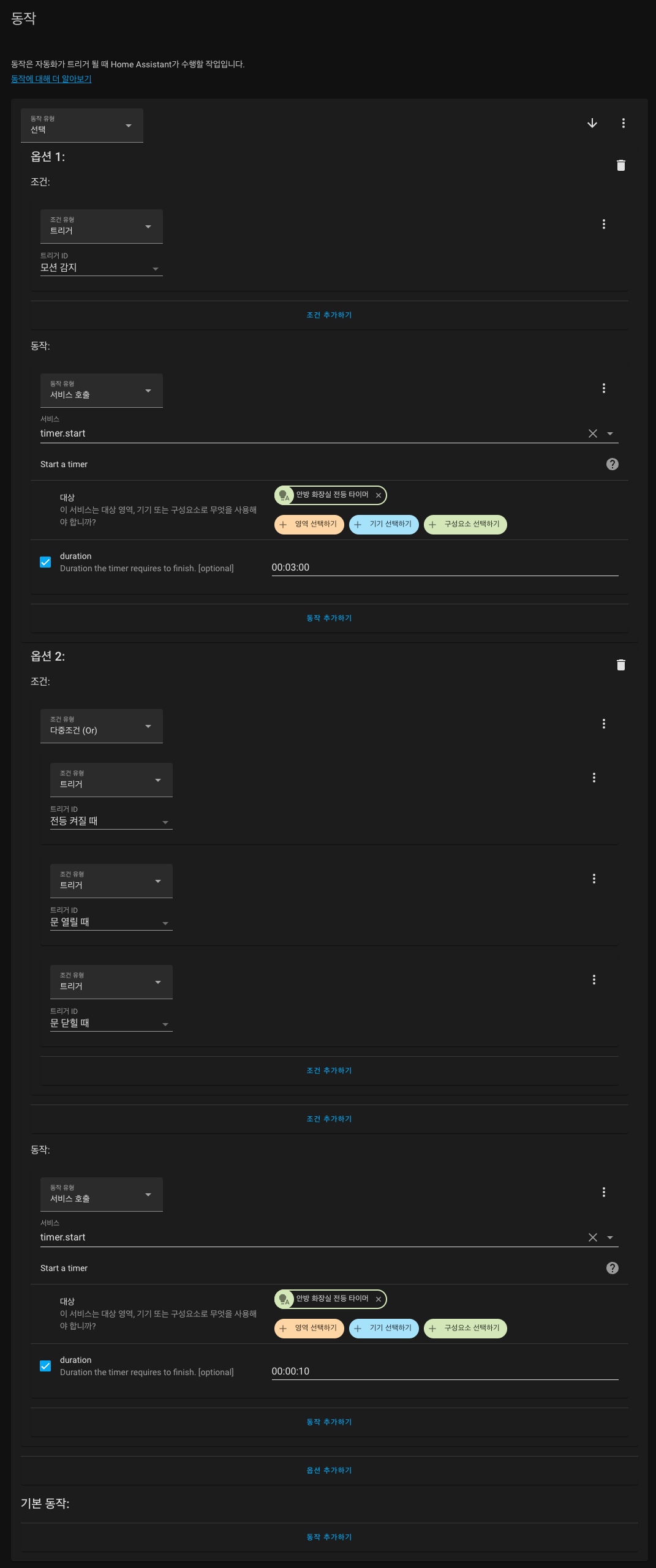 여기서 생성한 타이머가 자동화에서 계속 사용됩니다.