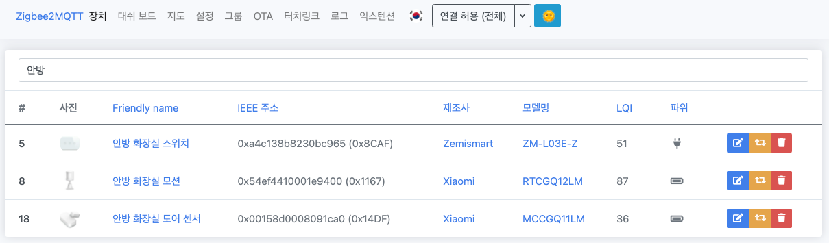 이번에 신규로 페어링.. 아카라 도어센서