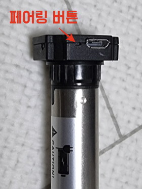 동글이를 전원이 들어오는 아무 USB에 꽂아주면 불이 들어오는데, 가운데 페어링 버튼을 5번 누르면 깜빡깜빡거리며 페어링 모드로 들어갑니다.