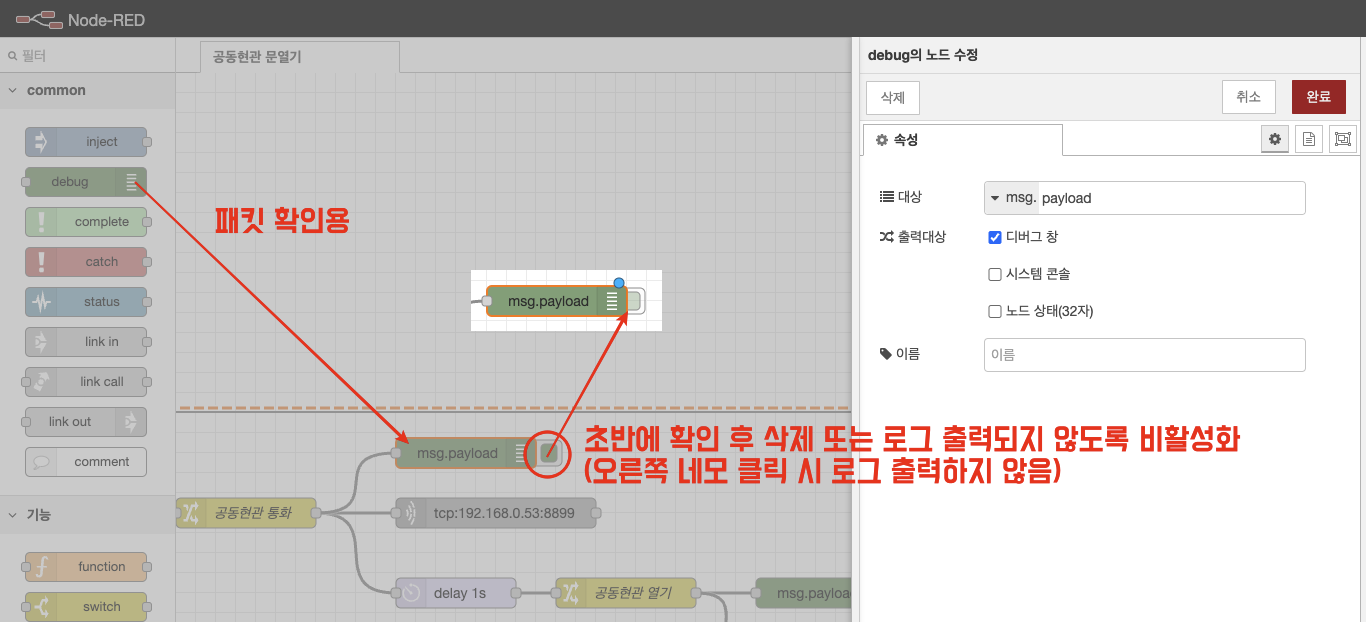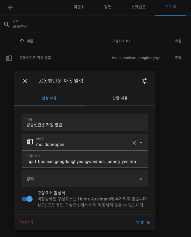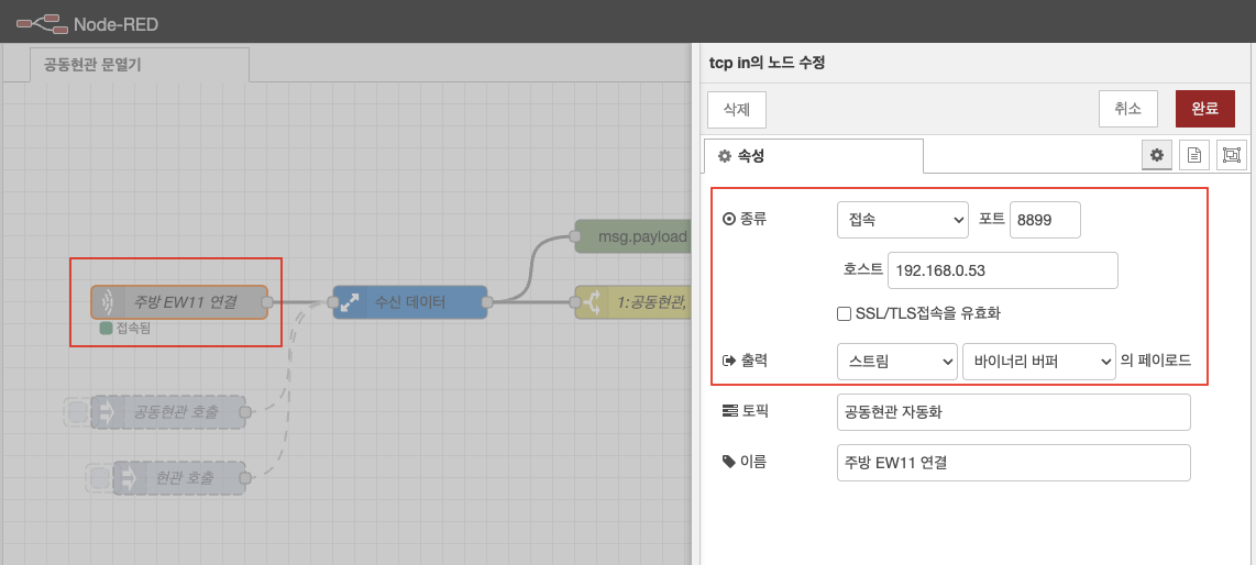 공동현관 문열기 자동화 노드별 설정