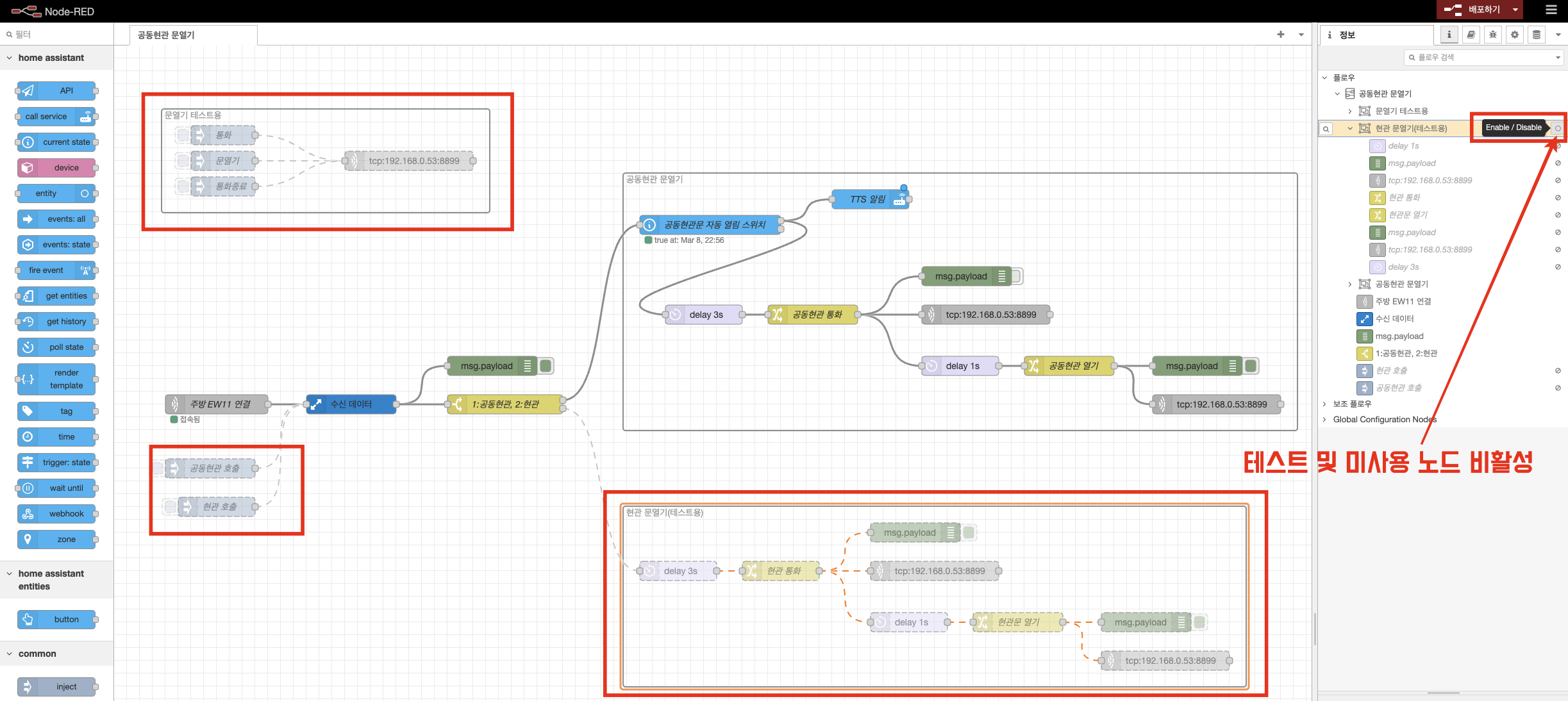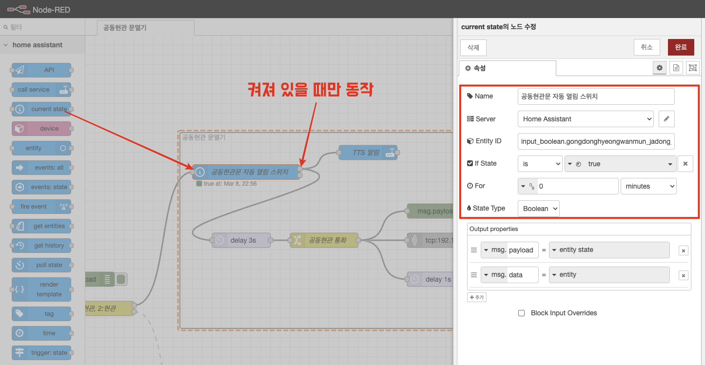 공동현관문 스위치가 켜져 있을 때만 동작하도록 노드 추가