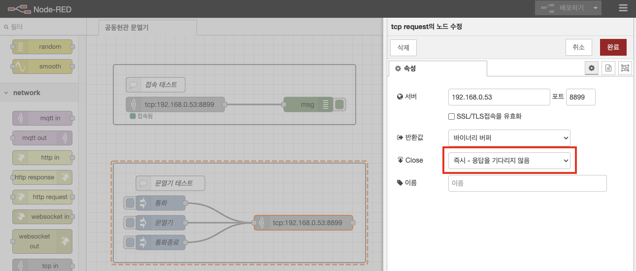 tcp request 노드 추가