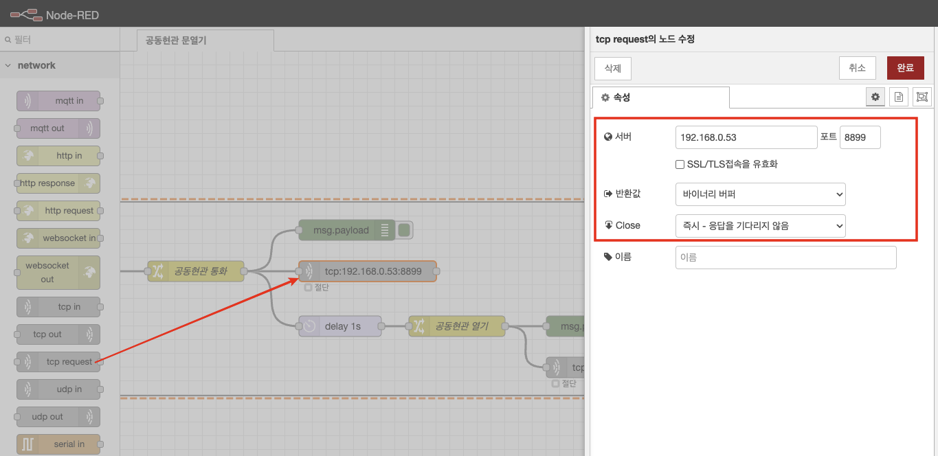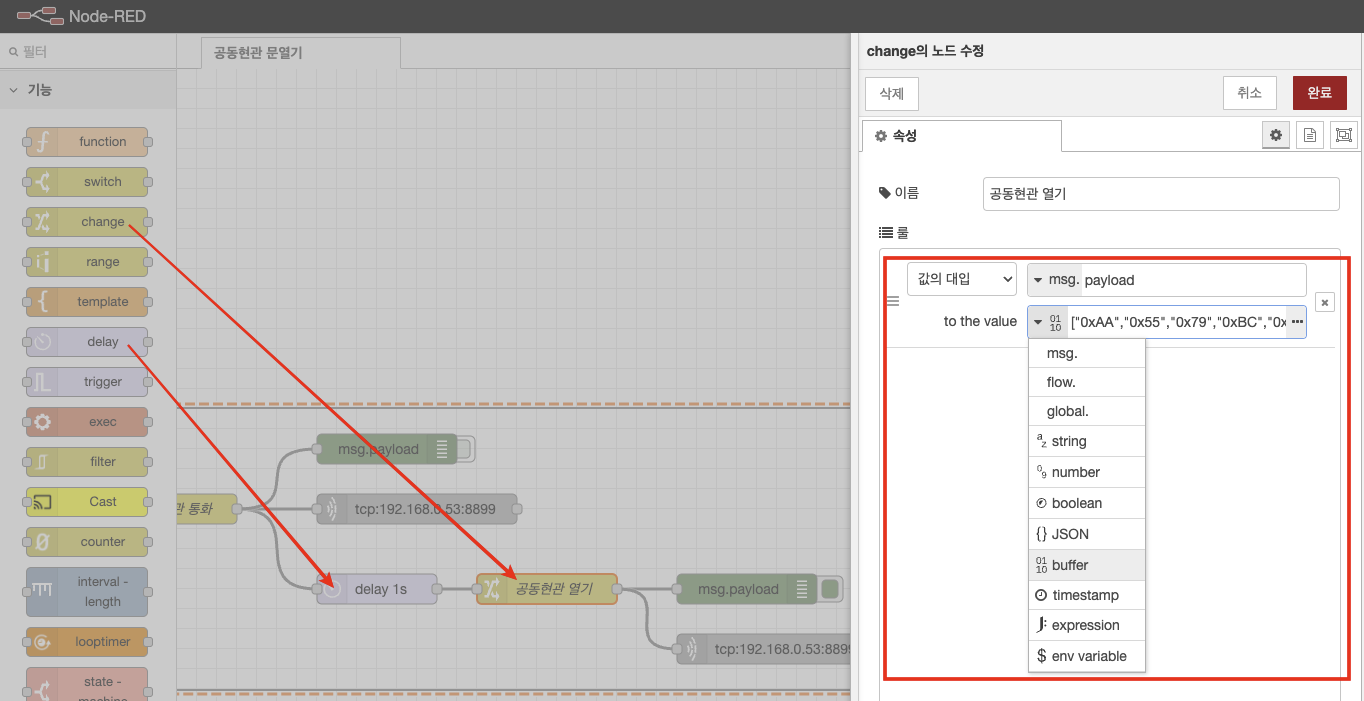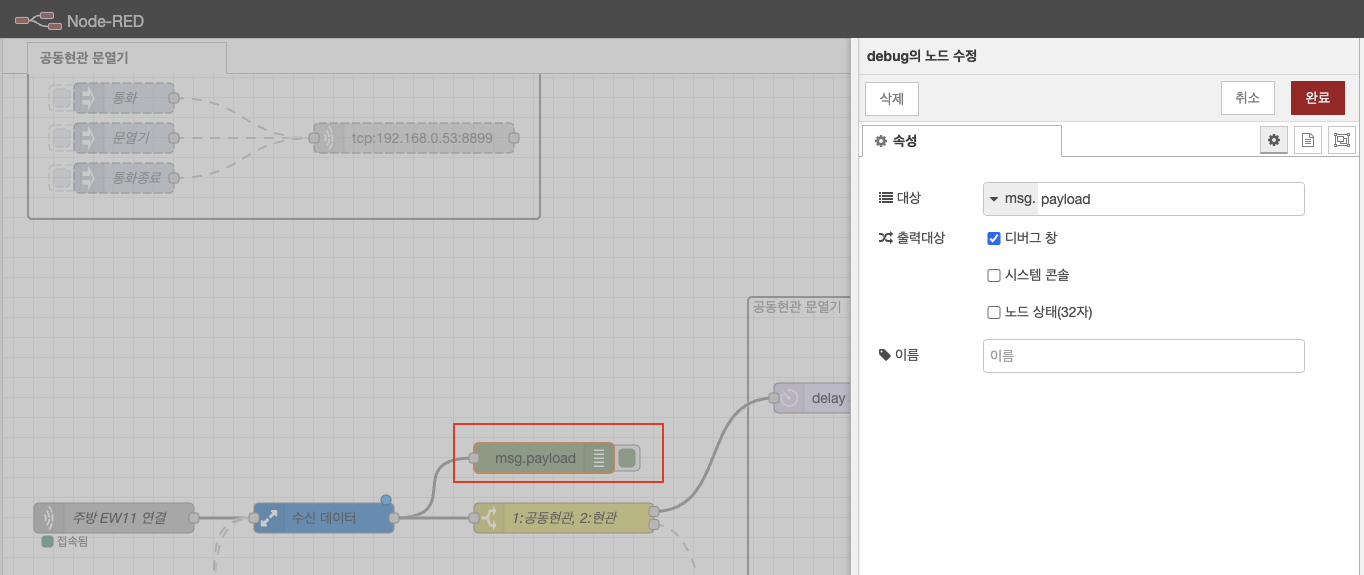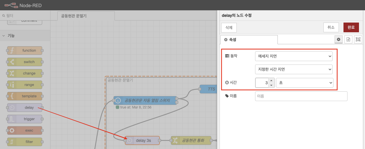 delay 노드 및 공동현관 열기 데이터 세팅