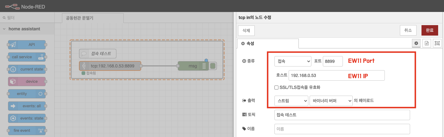 ew11 연결을 위한 노드입니다.