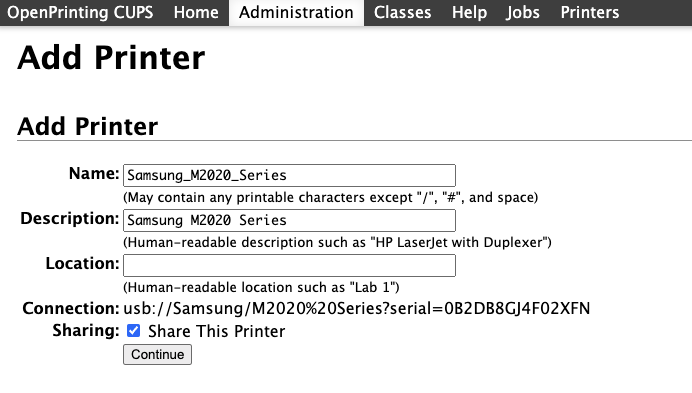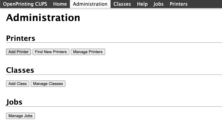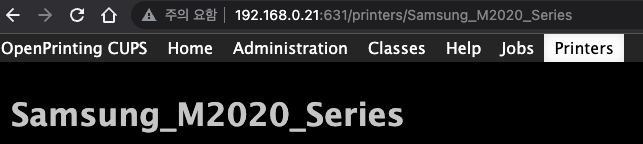 http://192.168.0.21:631/ 관리자 페이지에서 프린터를 추가해줍니다.