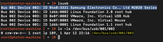 3. Docker가 설치된 VM상에서 USB 인식 확인
