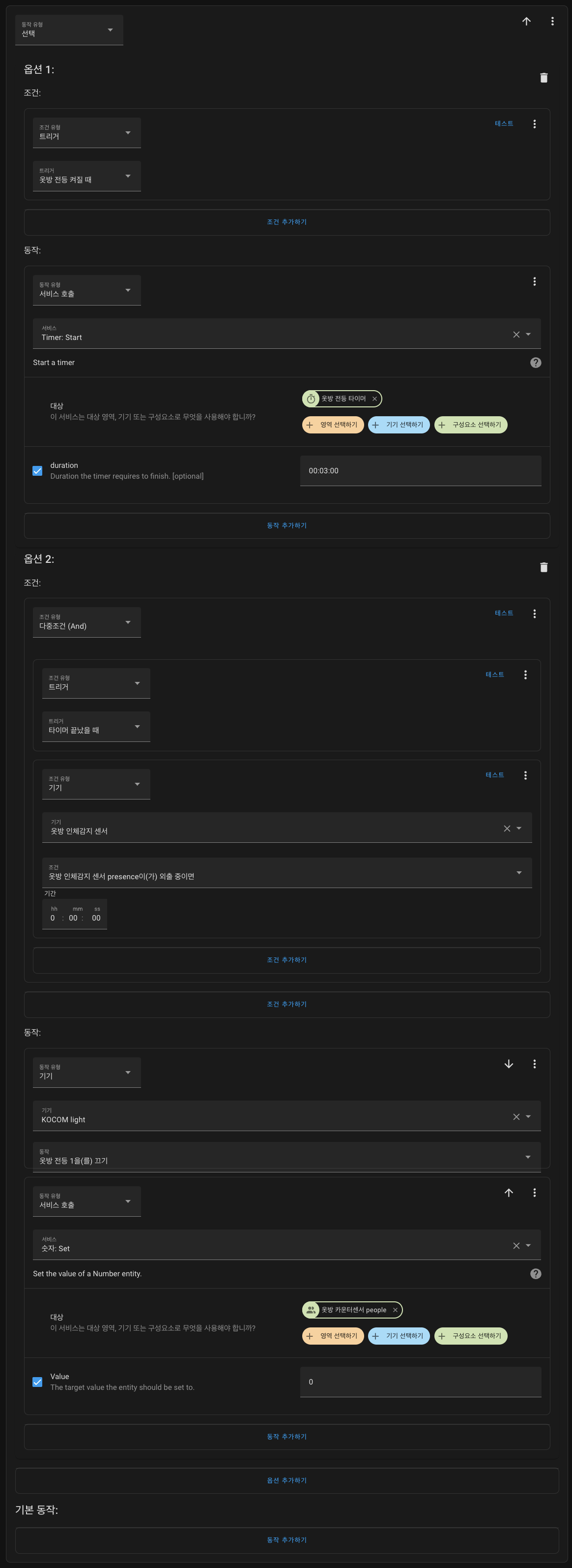 [HomeAssistant] 재실 전등 자동화 (인체감지센서 + 카운터센서)