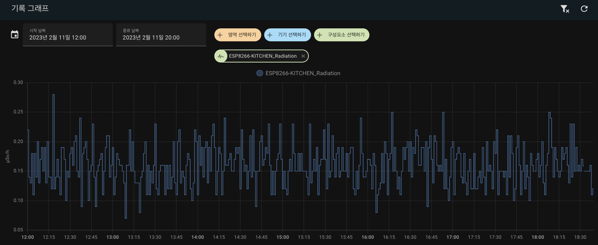 시간당 0.1 ~ 0.25 마이크로 시버트가 평상시 찍히는데, 개인에게 미치는 연 평균 자연 방사선 양은 2~3 mSv 라고 합니다.