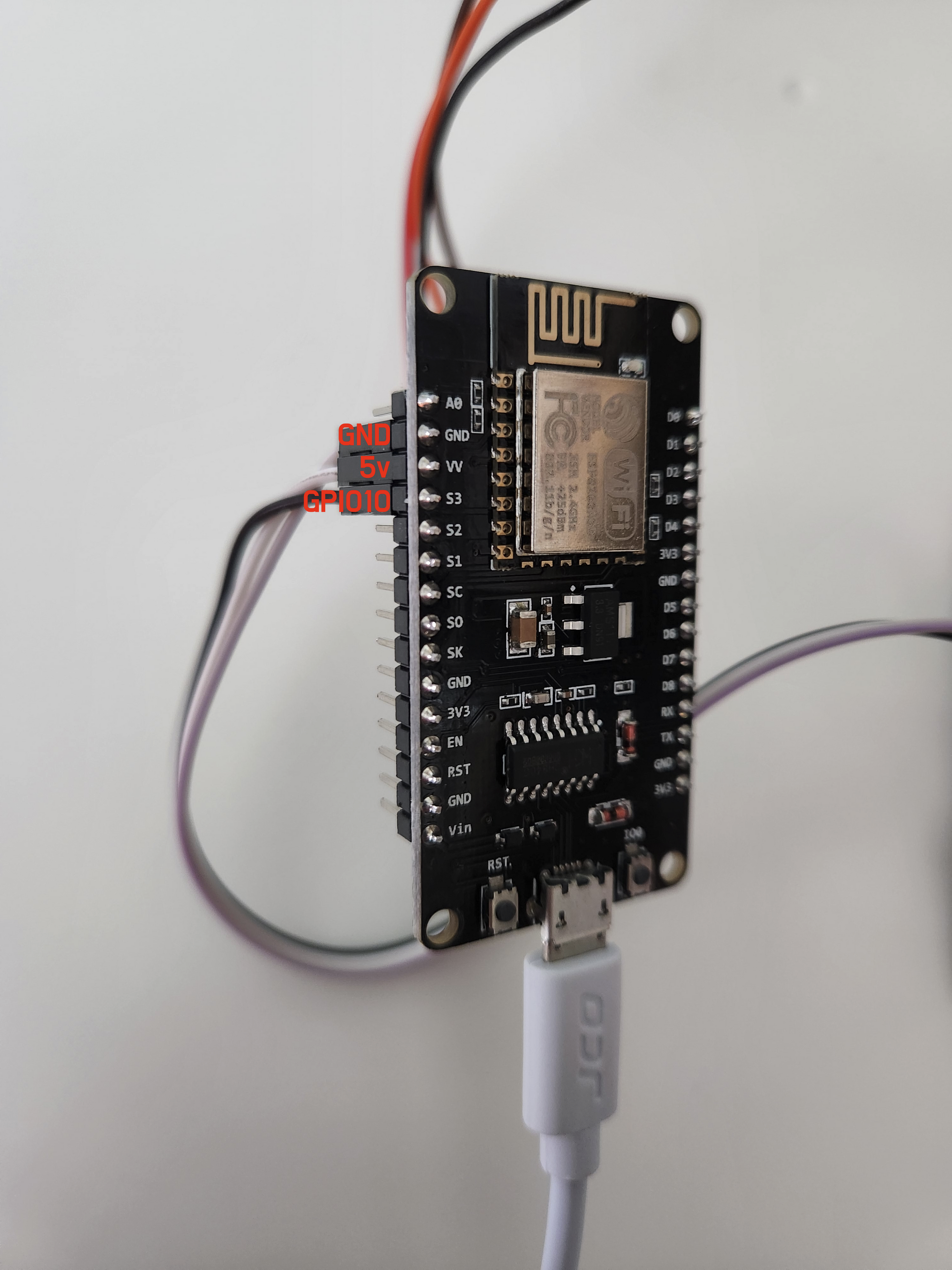 ESP8266 핀맵 중 USB로 입력된 전압을 그대로 보내주는 핀이 있어서 5V 전원은 거기에 연결해줬고,