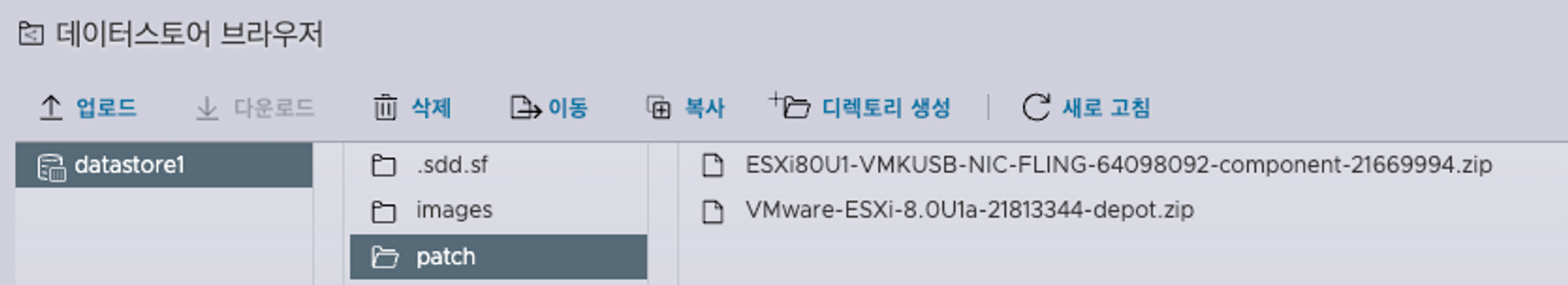 2023.06.04 현재 최신패치 VMware-ESXi-8.0U1a-21813344-depot.zip 파일입니다.