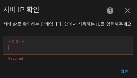 코콤 앱 사용자 ID 입력 : 서버 IP 확인 시 아이디로 어느단지인지 IP가 뭔지 정보를 가져옵니다.