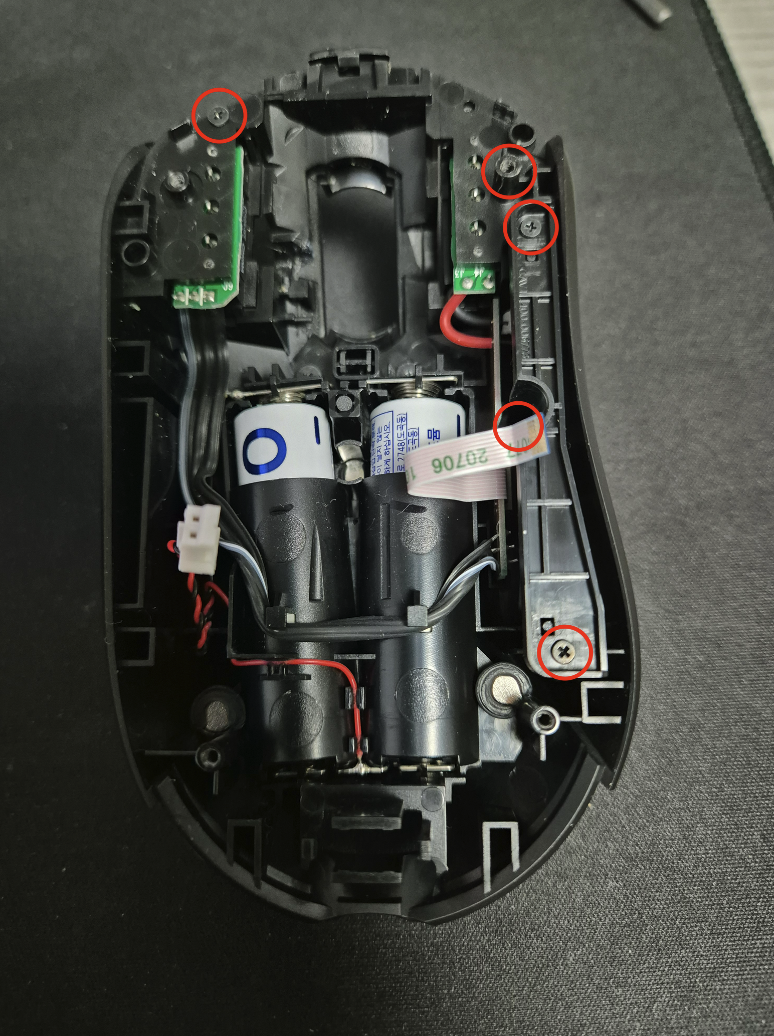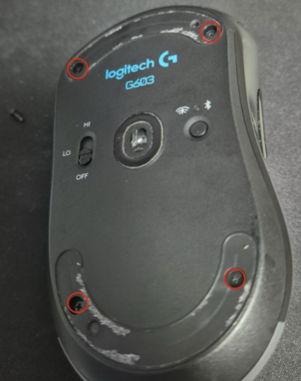 마우스 아래쪽 고무같은 걸 제거하면 나사 4개를 제거할 수 있었어요.