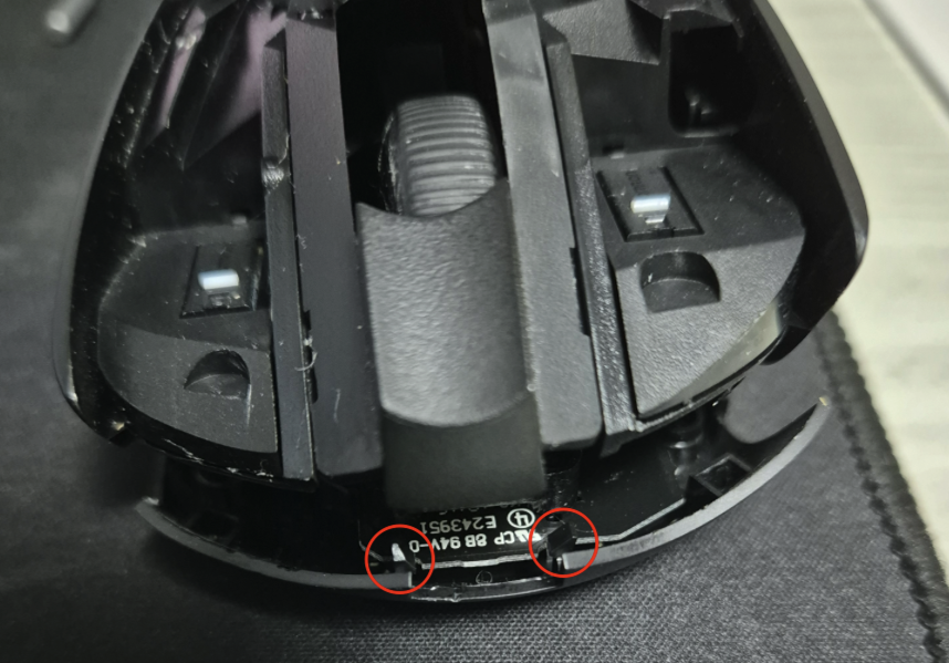 마우스 아래쪽 고무같은 걸 제거하면 나사 4개를 제거할 수 있었어요.