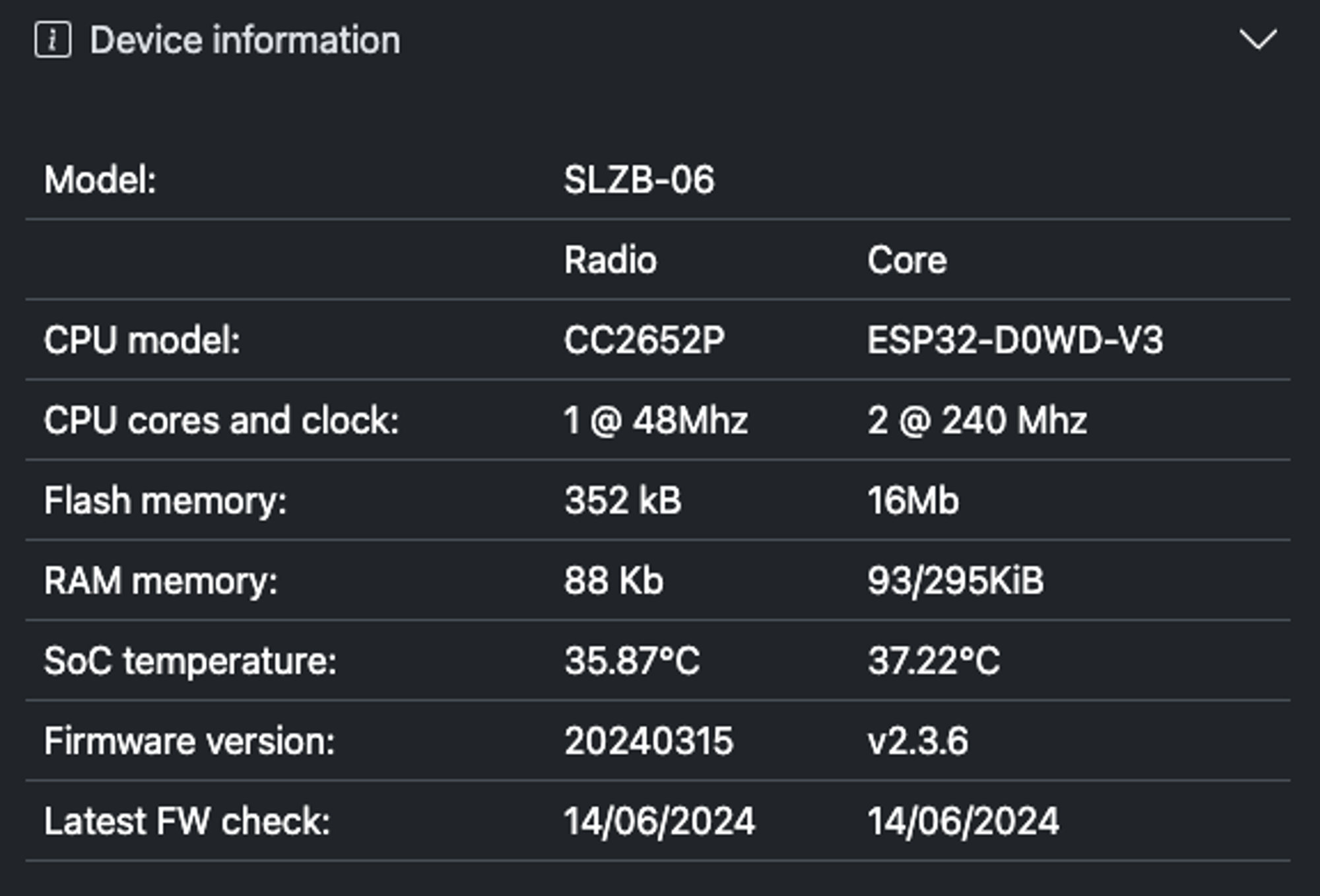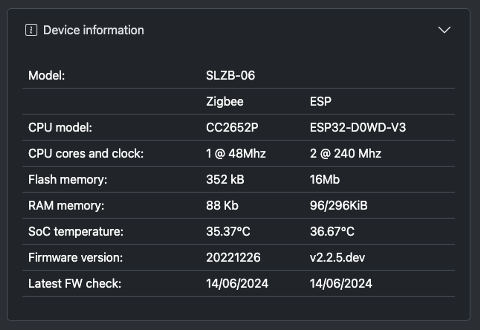 SLZB-06, SLZB-06M, SLZB-06P 세부 모델에 따라 zigbee 칩셋이 다릅니다.