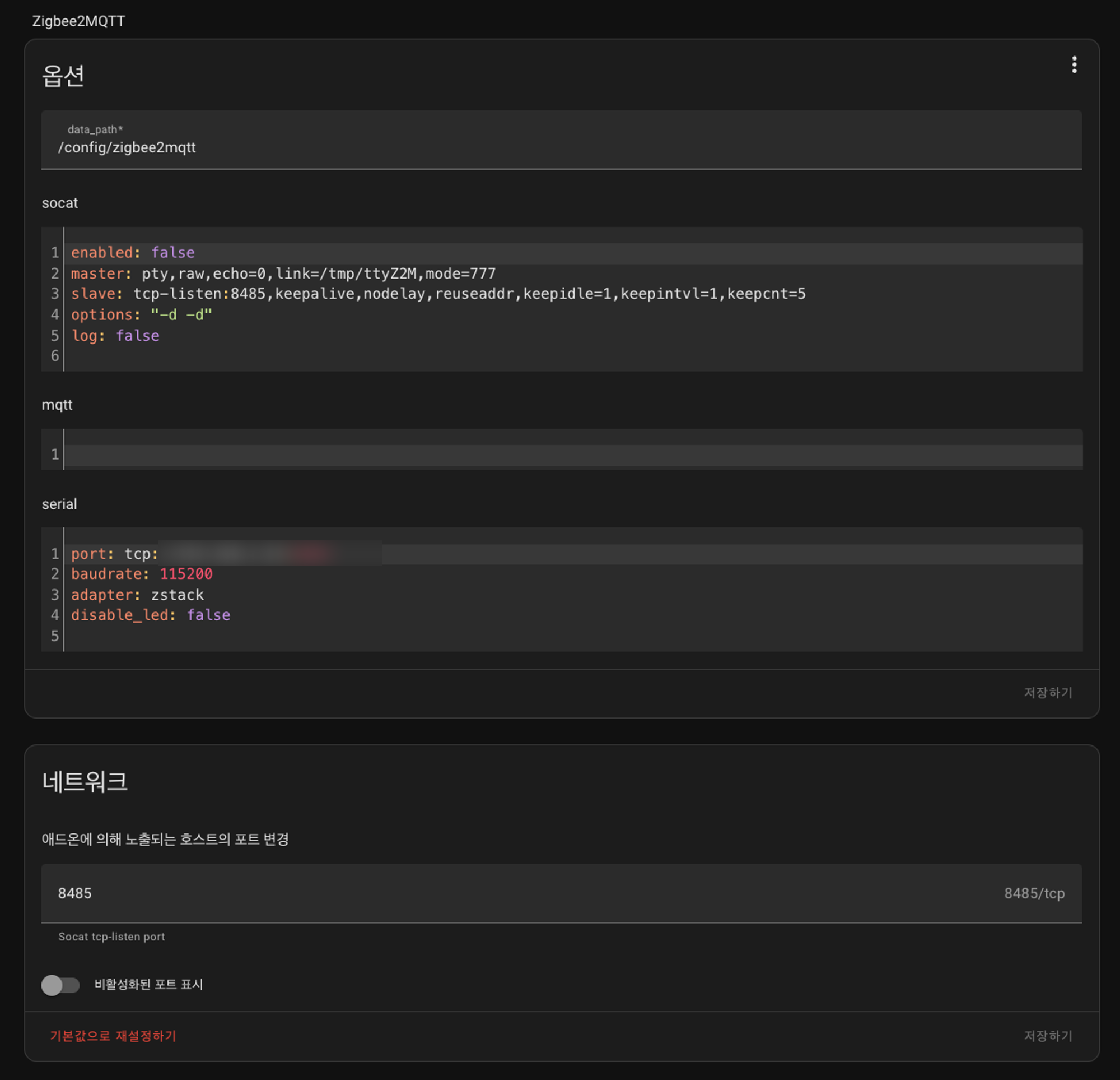 Z2M 설정 변경