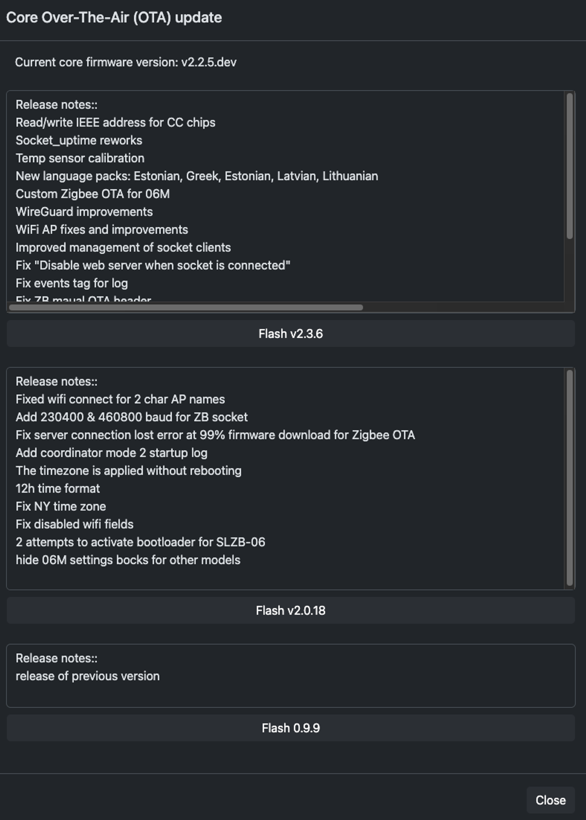 - SLZB-06 장치에 대한 코어 펌웨어를 OTA 로 제공하는 점