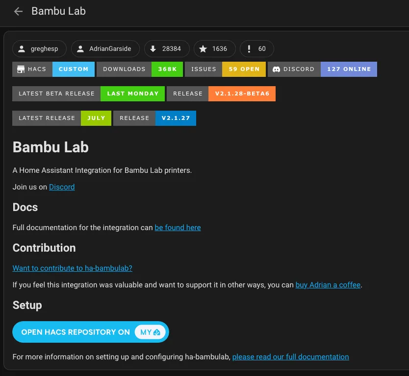 GitHub - greghesp/ha-bambulab: A Home Assistant Integration for Bambu Lab Printers