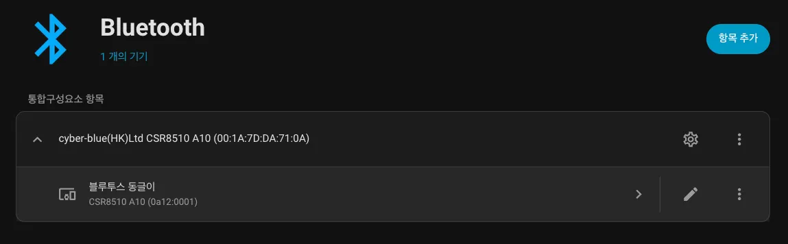 통합 구성요소에 블루투스 프록시 뜨면 기기 추가해 줍니다.
