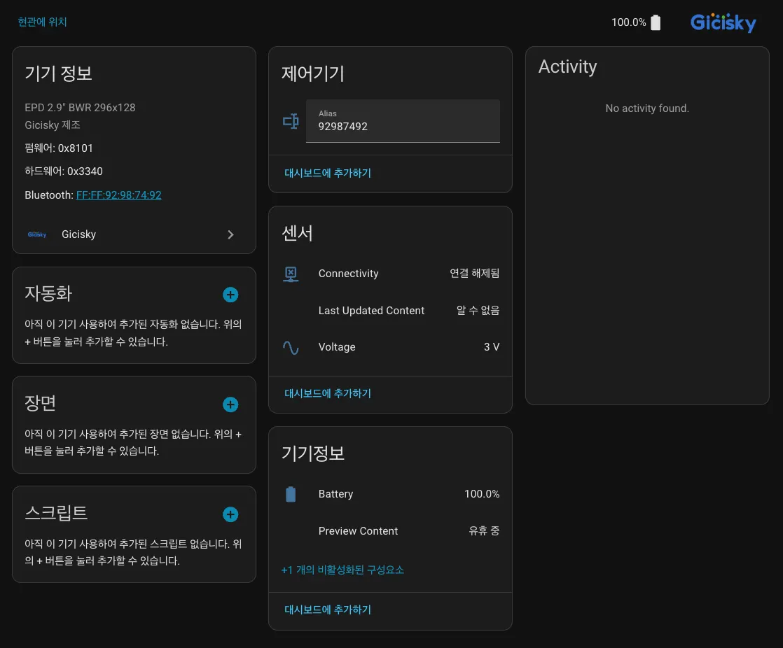 자동으로 gicisky 장치 검색되고나면 추가해줍니다.