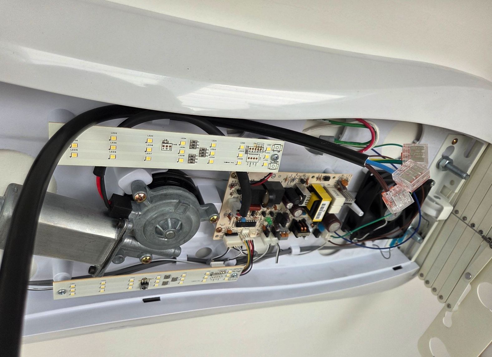 이후에 천장에 설치된 '전동 빨래 건조대'에서 해법을 찾았습니다. 건조대에 공급되는 전력을 끌어와 프린터를 위한 전용 콘센트를 새로 만드는 DIY 작업을 진행했습니다.