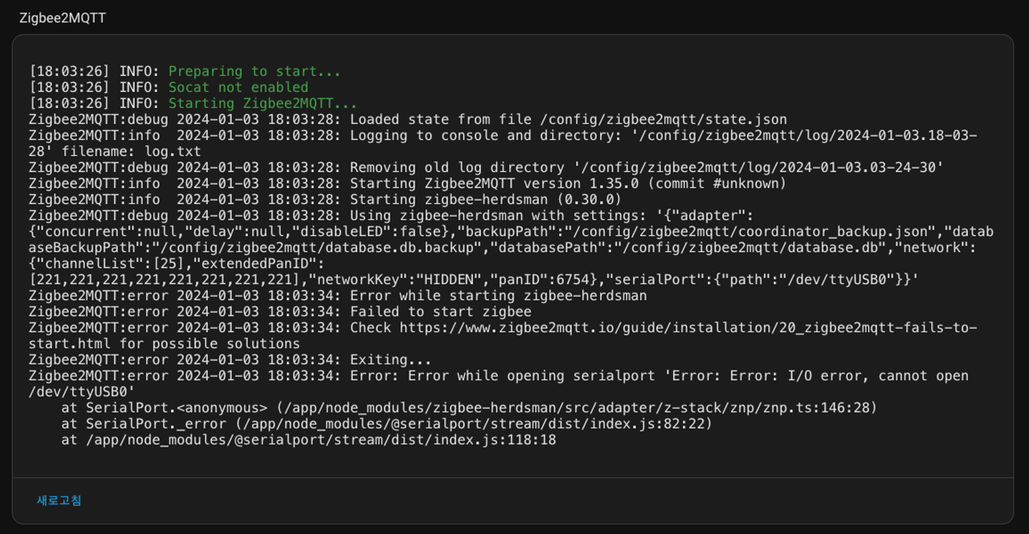 HA에서 zigbee 장치들을 활용하기 위해선 zigbee 코디네이터가 필요합니다. 이 코디네이터와 HA에서 z2m 또는 ZHA를 활용해서 zigbee 장치들을 활용할 수 있게 되는데요. zigbee 네트워크에 코디네이터는 한 장치만 설정할 수 있고, 일부 기기 또는 추가 코디네이터로 라우터 역할을 수행할 수 있습니다. 이 글은 코디네이터를 교체한 경험입니다. 최근 z2m이 버전이 오르면서 업데이트가 있었는데 공교롭게도 엔드디바이스 일부가 오프라인으로 바뀌면서 애드온 시작이 안 되는 현상이 있었습니다. 나타난 증상은 기기 오프라인 다수, z2m 시작불가 (usb 인식문제로 추측) 현상이 있었습니다. 이참에 코디네이터 펌웨어 업데이트를 해줬는데 문제가 해결되지 않아서 z2m 버전을 다운그레이드 했는데 ..